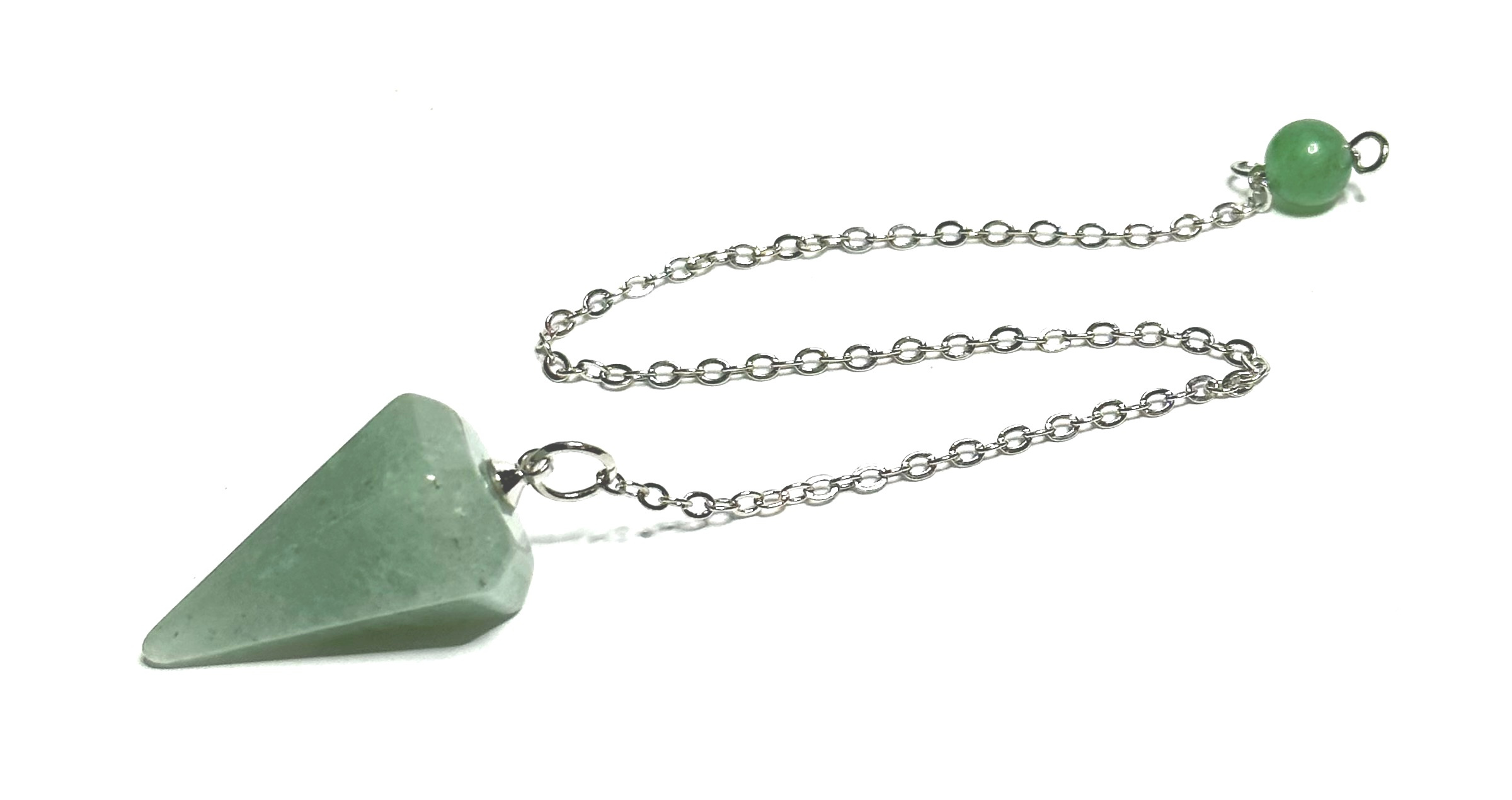 Aventurín zelené kyvadlo prírodný kameň 2,5 cm + 18 cm retiazka s korálkou, kameň šťastia