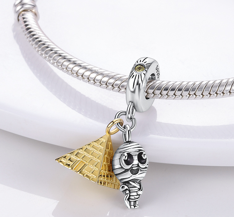 Boli ste na dovolenke v Egypte a chcete si priniesť spomienku na toto úžasné miesto? Kúpte si na náramok prívesok pyramídy s roztomilou múmiou, ktorý vám bude pripomínať tento krásny výlet. Špičková kvalita, remeselné spracovanie, ručná úprava.