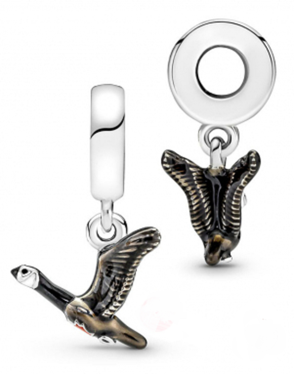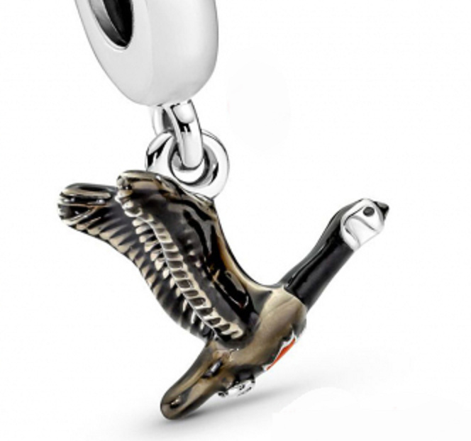 Zachovajte si svoj smer s krásnym príveskom Canada Goose Dangle Charm!Tento krásny vták, ručne vyrobený v prírodnom odtieni čierneho a hnedého smaltu, je hrdý na svoj pôvod a na hrudi má ozdobný červený kanadský Javorový list.Krásny prívesok na cestovný náramok alebo suvenír z Kanady.