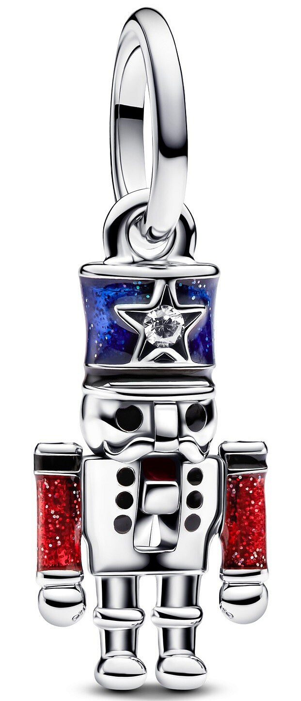 Vstup do kouzelného světa Vánoc s jedinečným přívěskem ve tvaru Louskáčka, který je už po staletí symbolem odvahy, ochrany a sváteční radosti. Tento přívěsek je z modrými a červenými třpytivými detaily, které mu dodávají slavnostní vzhled.