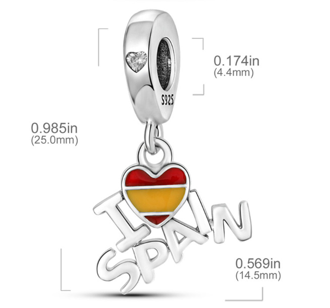 Premýšľate, čo si priviezť z výletu z Španielsko? Kúpte si tento prívesok na náramok I Love Spain a spomínajte na túto cestu, kedykoľvek sa pozriete na svoj náramok.