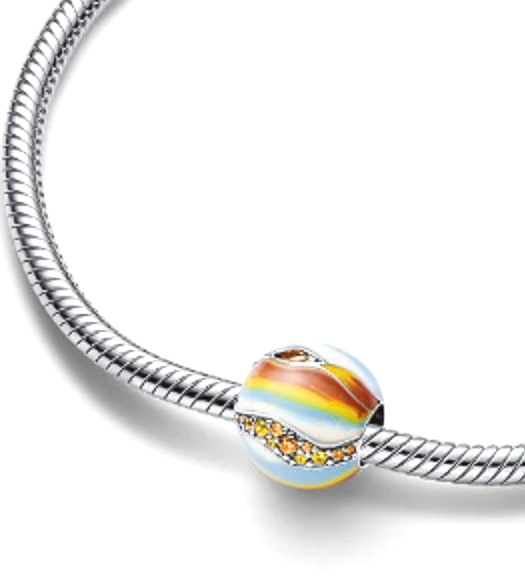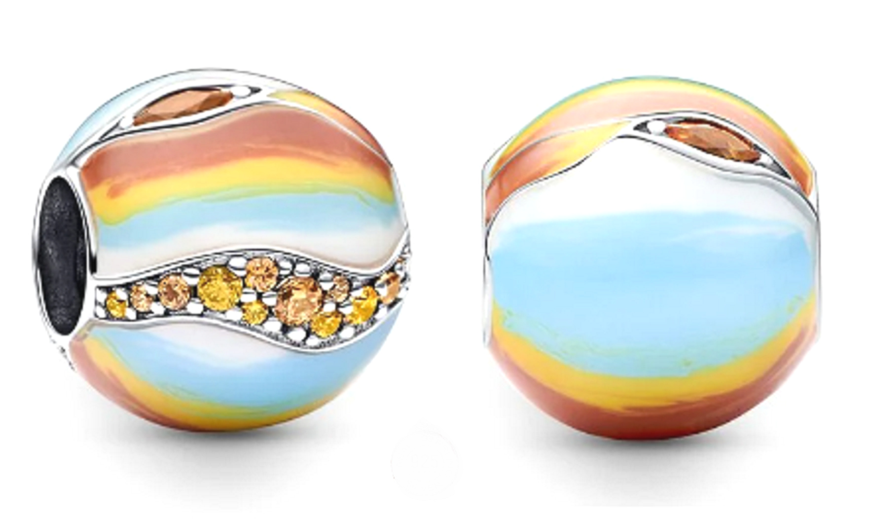 Napĺňte svoj štýl kozmickou krásou slnečnej sústavy s trblietavým príveskom Planéta Jowíš. Ľudia boli od pradávna fascinovaní nočnou oblohou – séria inšpirovaná slnečnou sústavou čerpá inšpiráciu z krásy planét a ich moderného zobrazenia v popkultúre. Tento ručne dokončený sférický prívesok je zdobený ručne naneseným smaltom v jemných tónoch jantáru, žltej, svetlomodrej a bielej, a trblietavými radmi vlnitého pavé, ktoré predstavujú „rieky“ Jupitera. Kamienok v tvare marquise v medovej farbe na jednej strane symbolizuje slávne „oko Jupitera“. Pridajte ho do svojej kolekcie šperkov pre elegantný nádych, ktorý ozdobí akýkoľvek štýl.