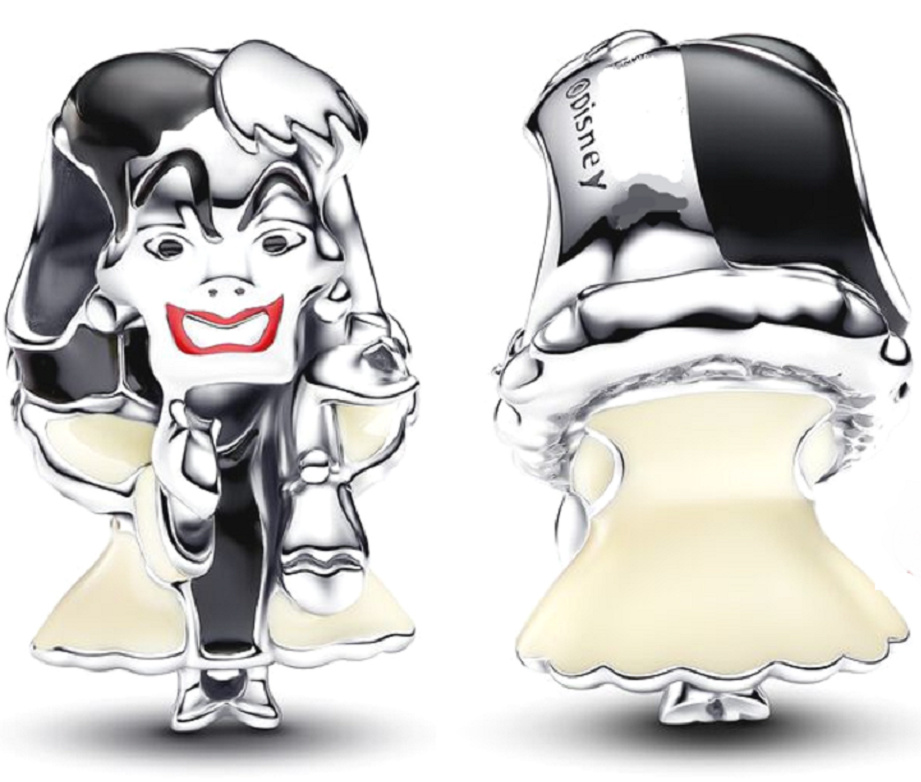 Vo väčšine svojich inkarnácií Cruella unesie 15 šteniat hlavných dalmatínskych postáv, Ponga a Perdity, s úmyslom premeniť ich na kožuchy spolu s 84 ďalšími dalmatínskymi šteniatkami, ktoré si predtým legálne kúpila. Akčný film Disney odhaľuje, že Cruella sa rozhodla stiahnuť šteniatka z kože, pretože keď krátkosrsté psy vyrastú, ich srsť je veľmi hrubá a nepredáva sa tak dobre v priemysle kožušinovej módy ako jemná, mäkká srsť šteniat.Postava sa stala popkultúrnou ikonou a slávnym symbolom zbabelosti, márnivosti a zla.Majte na pamäti, že korálky nie sú úplne identické v dôsledku ručnej práce.