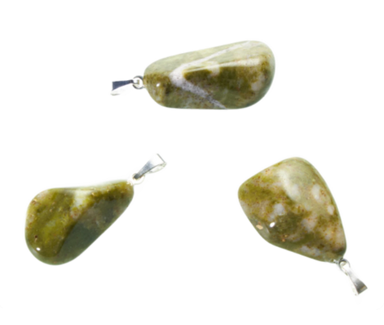 Prívesok je vyrobený z Tromlovaného kameňa, je spojený s kvalitnými českými kovovými časťami - pútko je vyrobené z postriebreného tombaku bez obsahu niklu.