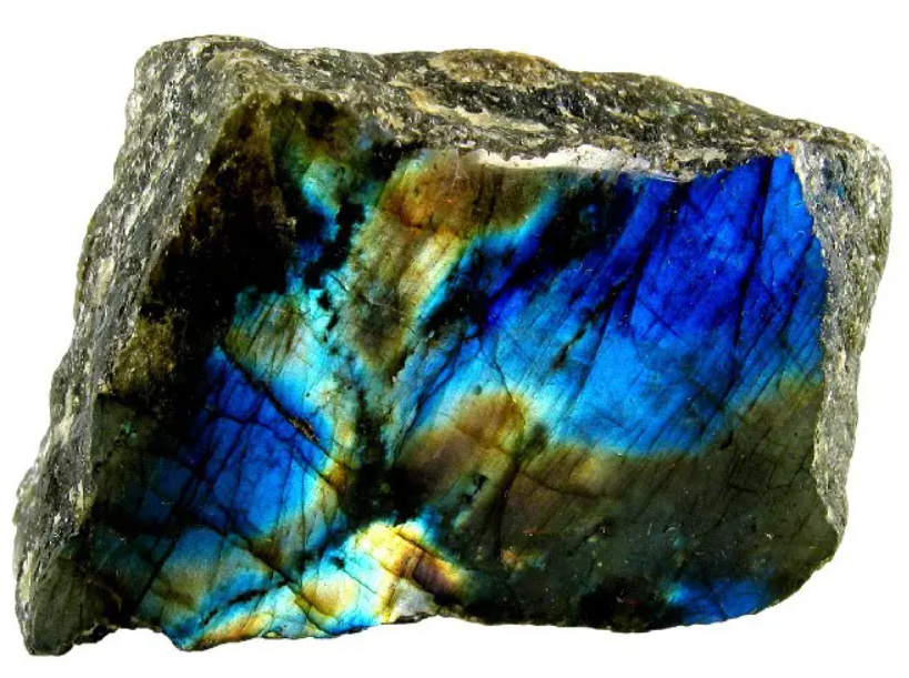 Labradorit je mystický krystal, který je pojmenován po kanadském městě Labrador, kde se těží. Má obyčejnou našedlou barvu, ale z té vyzařují proti světlu odstíny modré a žluté. Je to kámen proměny, působí na čakru třetího oka: vaše intuitivní centrum, kde se zvyšují psychické schopnosti.