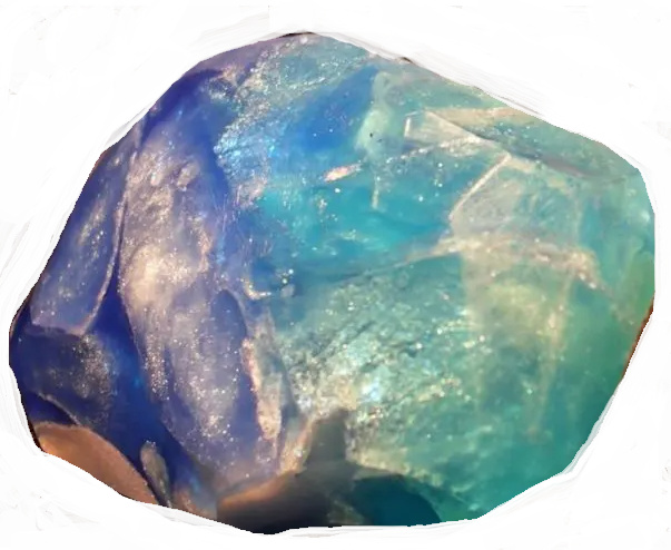 - akvamarín (zelenomodrý), čirý nebo neprůhledný, někdy může být broušený do fazet nebo leštěný