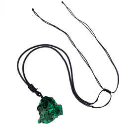 Po chemickej stránke je malachit hydrouhličitan medi. Ide o minerál, ktorý obvykle tvorí povlaky, ihličkovité kryštály alebo celistvé ledvinité agregáty s vrstvovitou stavbou. Už v starom Egypte sa z neho vyrezávali kameje, amulety a iné ozdobné predmety, drvený malachit sa tiež používal ako farbivo v maliarstve alebo ako líčidlo. Ponúkaný kameň pochádza z Konga.