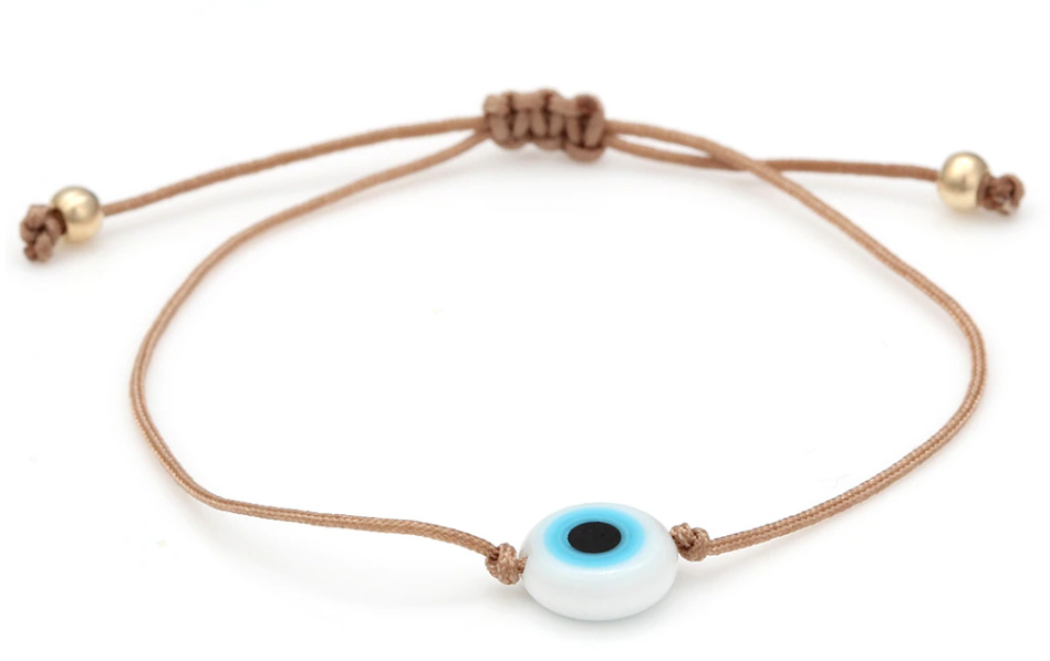 Modré oko náramok lano tkané hnedá, zlatá farba guľa