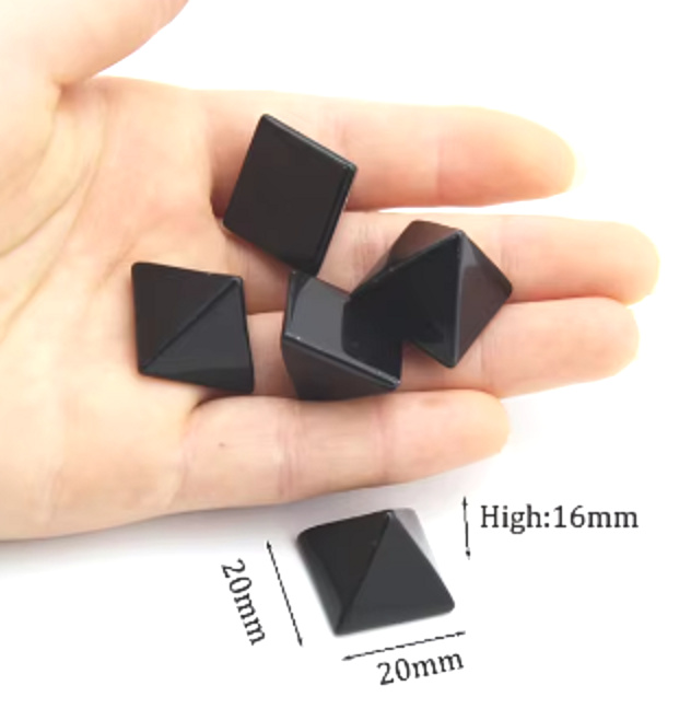 Popis Obsidian čierny Pyramída prírodný kameň 2 x 2 x 1,6 cm čistí - energia - harmónia - emócie 1 kus, kameň záchrany