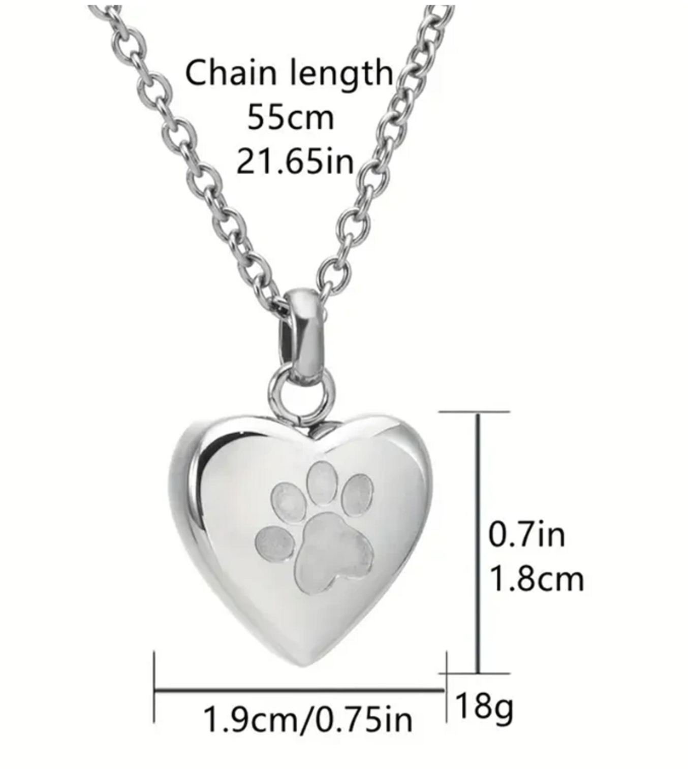 Elegantní pietní náhrdelník ve tvaru srdce s vyrytým motivem zvířecí tlapky je určen jako vzpomínkový šperk pro uchování symbolické části popela, zeminy z oblíbeného místa či drobné památky na vašeho mazlíčka. Vyroben je z kvalitní nerezové oceli, která je odolná vůči korozi a vodě, takže si jej můžete bez obav ponechat při každodenním nošení.