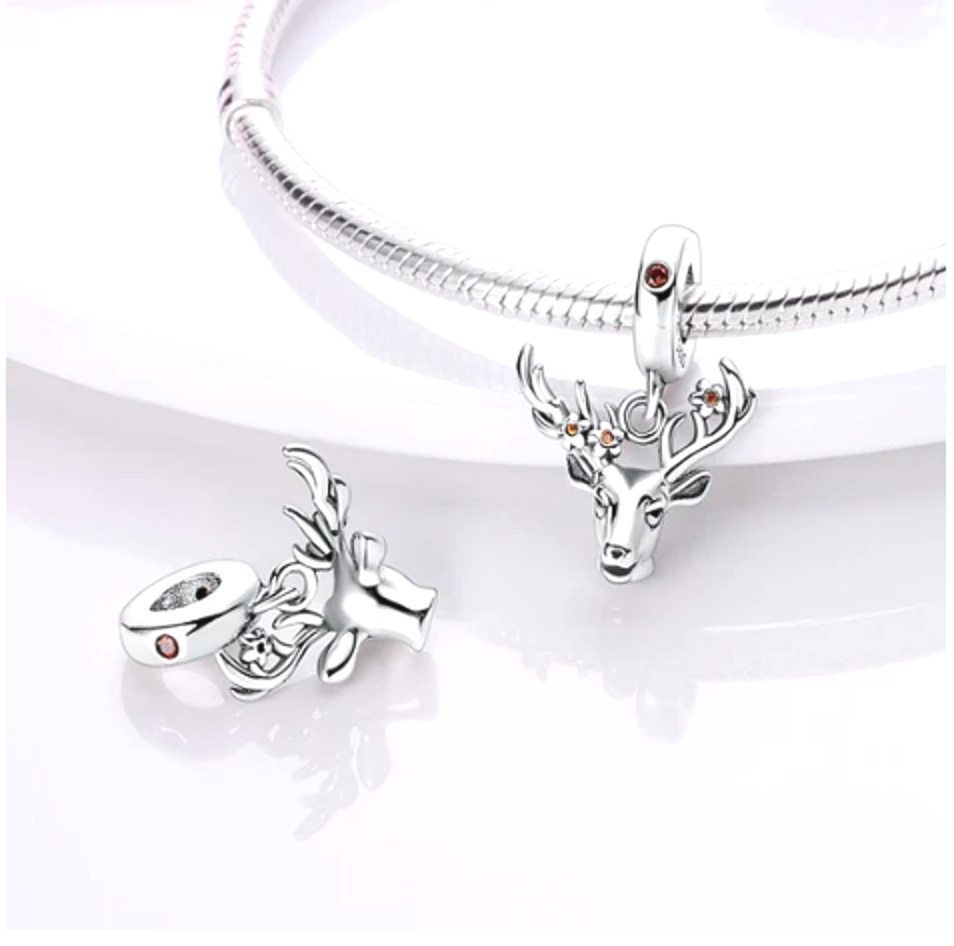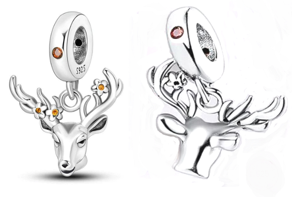 Strieborný prívesok 925 s jeleňom a kvetmi na paroží, zdobený trblietavými oranžovými zirkónmi. jeleň symbolizuje hrdosť, silu a výdrž.Každým príveskom vyrozprávajte svoj príbeh a vytvorte si náramok, ktorý odráža to, kto ste.Váš štýl. Váš náramok.Váš príbeh.
