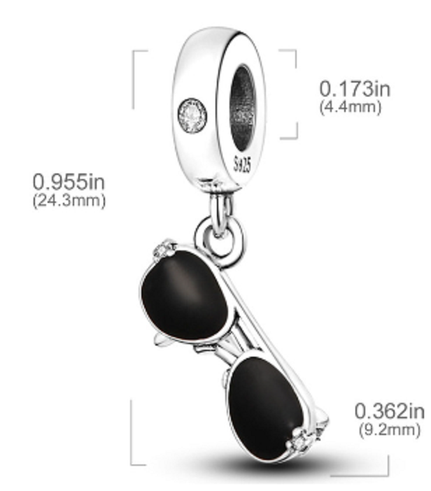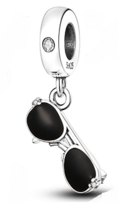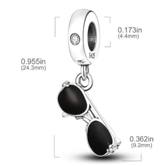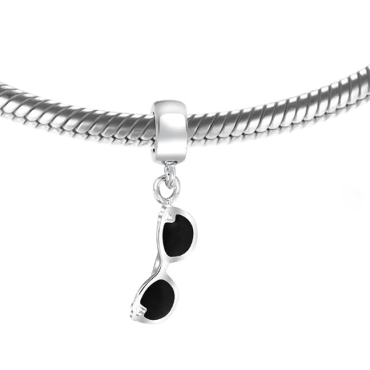 Prívesky predstavujú čierne slnečné okuliare, ktoré sú odnímateľné. Všetky oči sa na vás budú upierať, keď si do svojho korálkového náramku pridáte tento rozkošný čierny visiaci korálik s motívom slnečných okuliarov.Tento visiaci prívesok je vyrobený zo striebra 925 s roztomilými slnečnými okuliarmi s hladkým čiernym smaltom a trblietavými bielymi zirkónmi.Váš náramok s letnými šperkami je jednoducho roztomilejší.