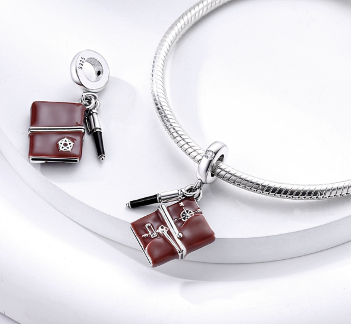 Strieborný prívesok 925 s obchodným diárom a perom . písacie potreby sú detailne prepracované, diár je zdobený hnedým smaltom a bielymi trblietavými zirkónmi na krúžku prívesku. možno vás čaká prvý deň v novom zamestnaní, tento prívesok vám pomôže prežiť ho hladko a vždy vám pripomenie váš prvý deň. Každým príveskom vyrozprávajte svoj príbeh a vytvorte si náramok, ktorý odráža to, kto ste.Váš štýl. Váš náramok.Váš príbeh.