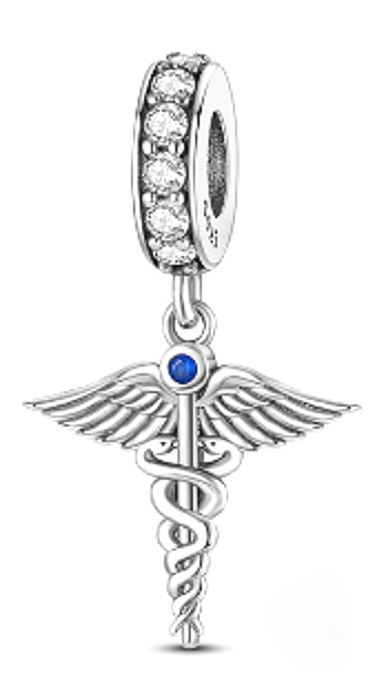Prívesok zo striebra, zdobený modrým krištáľom . prívesok môžete darovať lekárom a lekárnikom . roztomilý prívesok rozveselí váš náramok.Či už si chcete pripomenúť výnimočný okamih, alebo len pridať iskru do svojho náramku, tento strieborný prívesok vás určite zaujme. Pridajte si ho do svojej zbierky ešte dnes a užívajte si jeho nadčasovú krásu dlhé roky!