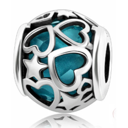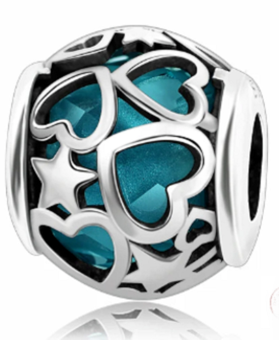 Luxusný a sofistikovaný korálik v podobe modrého zirkónu zdobeného ručne vyrezávanými nebeskými hviezdami a srdiečkami.obdarujte seba alebo svojich blízkych týmto strieborným príveskom.