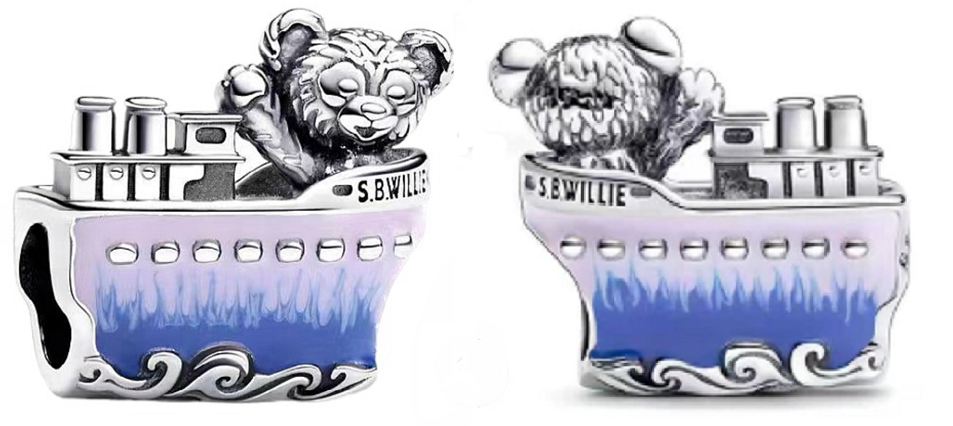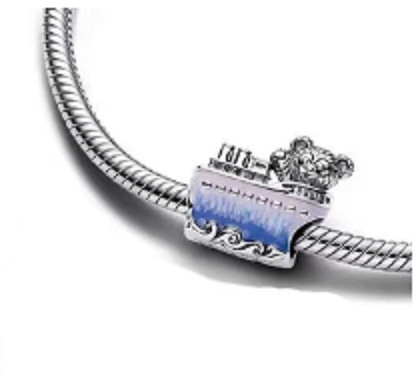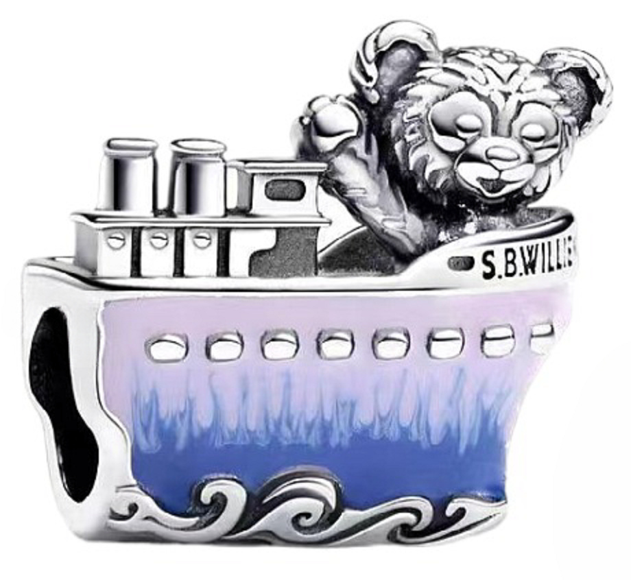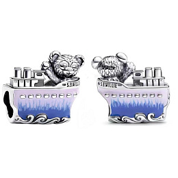 Na smetisku pod starým matracom ležal zabudnutý medvedík. Ležal tam v daždi, ležal tam v snehu. Časom medveď vplyvom vody a snehu zosivel a zmodral mu nos. V jeho skrčenom tele bolo niekoľko dier. Až kým ho jedného dňa neobjavilo malé dievčatko a nevzalo si ho domov. Požiadala svoju matku, aby medveďa očistila a diery opravila záplatami. Odvtedy sú najlepšími priateľmi. Darujte strieborný korálik medvedíka, ktorý sa plaví za dobrodružstvom v loďke pokrytej bielym a modrým smaltom.