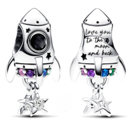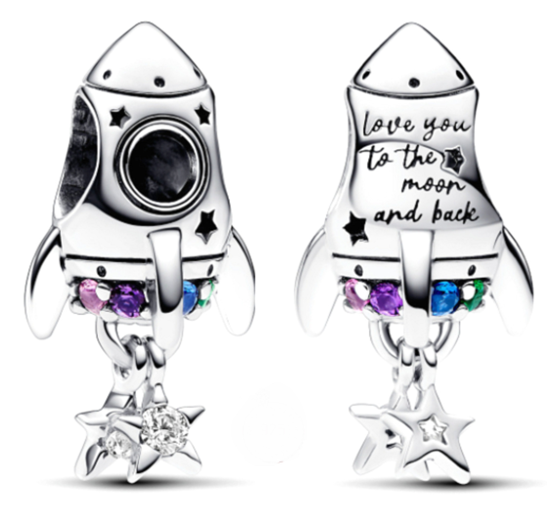 Cestujte ku hviezdam s raketovým príveskom. Trocha predstavivosti - a kúsok čarovného hviezdneho prachu - dokazuje, že vždy je možné dosiahnuť vysnívaný cieľ. Na jednej strane rakety je okrúhly výrez s drážkovaným detailom, ktorý predstavuje okno s vyrezanými hviezdami okolo neho. Na druhej strane je vyrytý nápis "Love you to the moon and back" (Milujem ťa na Mesiac a späť) a spodná časť rakety je posiata farebnými umelými kryštálmi a má zavesené hviezdy. Strieborný prívesok, ktorý slúži ako symbol a pripomína nám, že bez ohľadu na to, ako vzdialené sa môžu zdať vaše sny, všetko je možné.