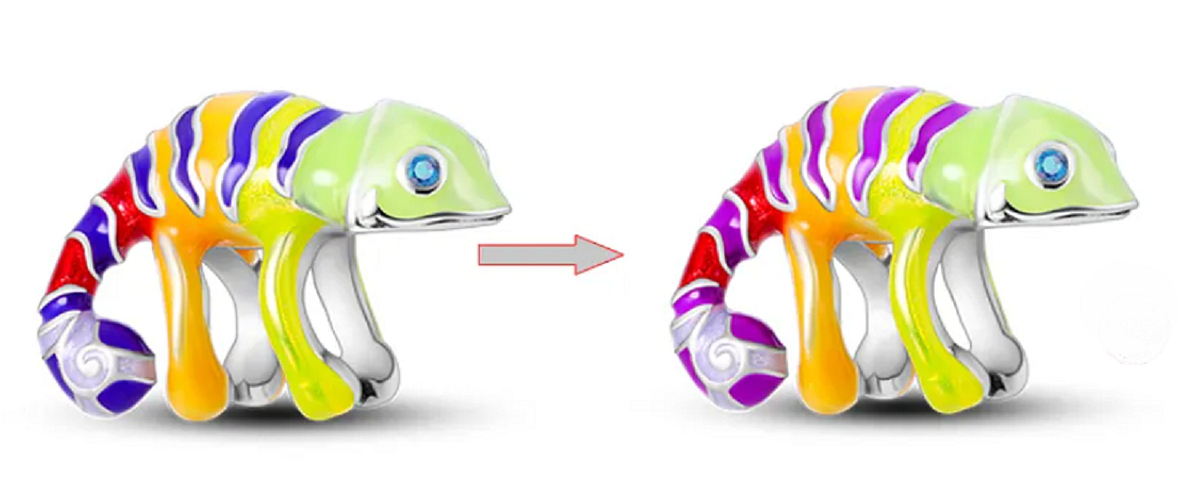 Chameleón je viac než len šperk, je to čarovný doplnok vašej zbierky. Jeho nádherné odtiene modrej glazúry a iskra v oku vďaka vloženému zirkónu vás jednoducho očaria. Tento prívesok chameleóna však neskrýva len svoje očarujúce farby, ale je symbolom prispôsobivosti a zmeny, ktorý vás povzbudzuje k plnohodnotnému životu .Korálky so strieborným motívom roztomilého chameleóna by nemali chýbať na náramku žiadneho milovníka týchto zvierat.tento nezameniteľný jašter sa môže pochváliť schopnosťou meniť farby.
