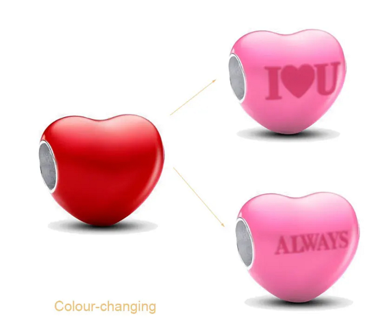 Odhaľte, čo máte na srdci, pomocou kúzla srdca so skrytými odkazmi, ktoré menia farbu. Pri izbovej teplote vyzerá tento prívesok ako zaoblené srdce s jasne červeným smaltom. Keď však prívesok podržíte, zahreje sa a smalt sa zmení na ružový, čím sa odhalí tajný odkaz:"I ♥ U" na jednej strane srdiečka a"ALWAYS" na druhej strane. Hravý prívesok pre vašu lásku s prvkom prekvapenia navyše.