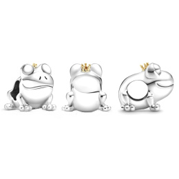 Noste pripomienku viery v pravú lásku s príveskom Žabieho princa.tento prívesok, ručne vyrobený zo striebra 925 a jemne pokovovaný 14-karátovým zlatom, má usmievavú žabku s veľkými očami a nožičkami z mikroguličiek s miniatúrnou korunkou.tento rozprávkový prívesok, inšpirovaný myšlienkou, že musíte pobozkať niekoľko žiab, aby ste nakoniec našli svojho princa, prináša trochu rozmarnosti do každého oblečenia alebo príležitosti.