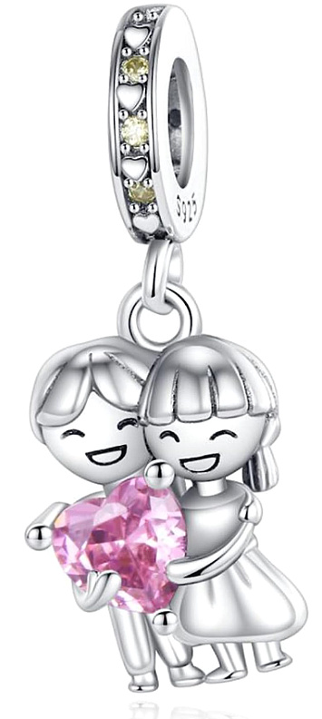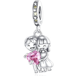 Prívesok zo striebra 925 s mužom a ženou držiacimi ružové srdce, navrhnutý s trblietavými zirkónmi.