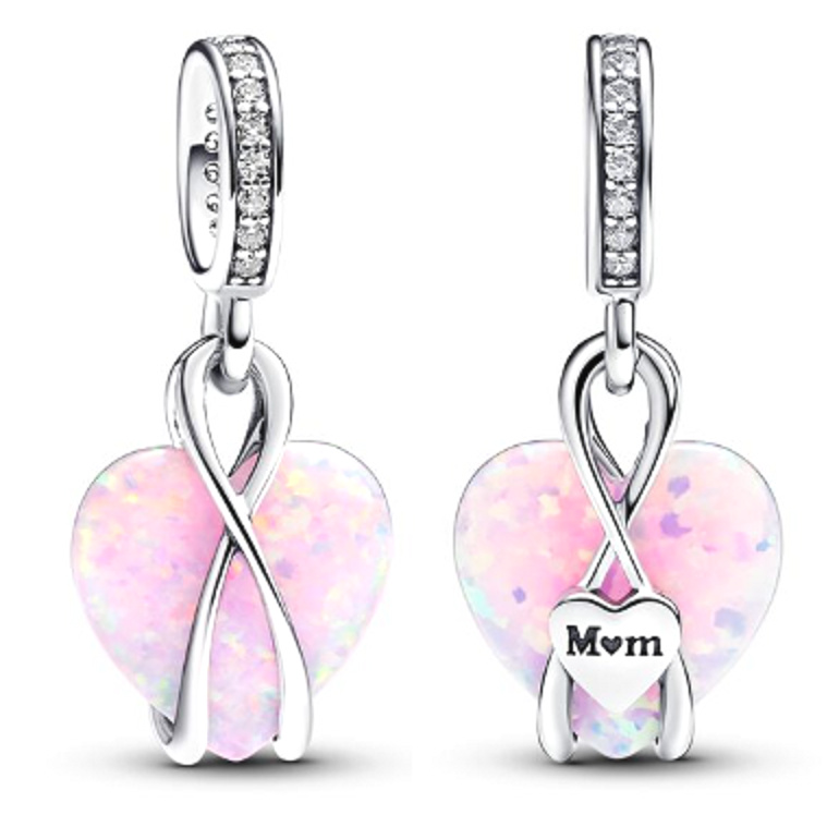 Oslávte svoju mamu príveskom Mum Opal Heart.tento srdcový prívesok je vyrobený zo striebra 925 a je zdobený ružovým opálom v tvare srdca, ktorý bol vytvorený v laboratóriu a zdobený spektrom farieb a trblietavými prúžkami.zložitý dizajn tvoria prekrývajúce sa strieborné línie tvoriace prsteň, jemný disk v tvare srdca s vyrytým nápisom "Mom" a rad pavé pre väčší lesk. oslávte krásu materstva kúzlom, ktoré zachytáva jeho bohatstvo a mnohotvárne príbehy.