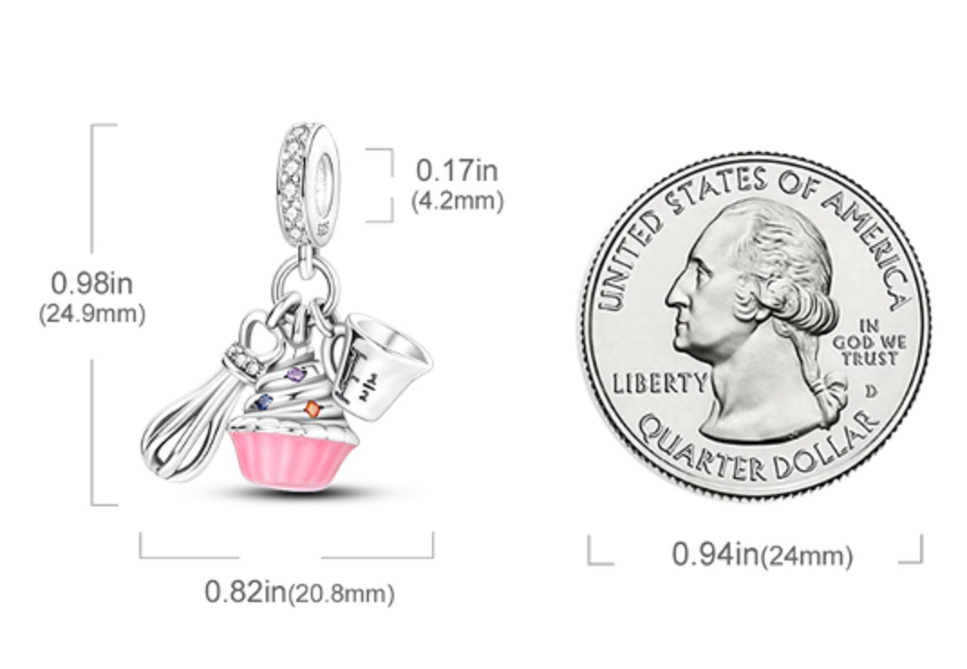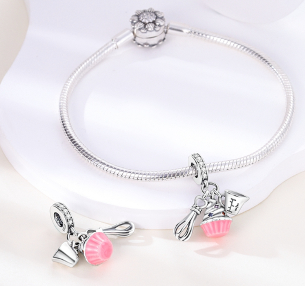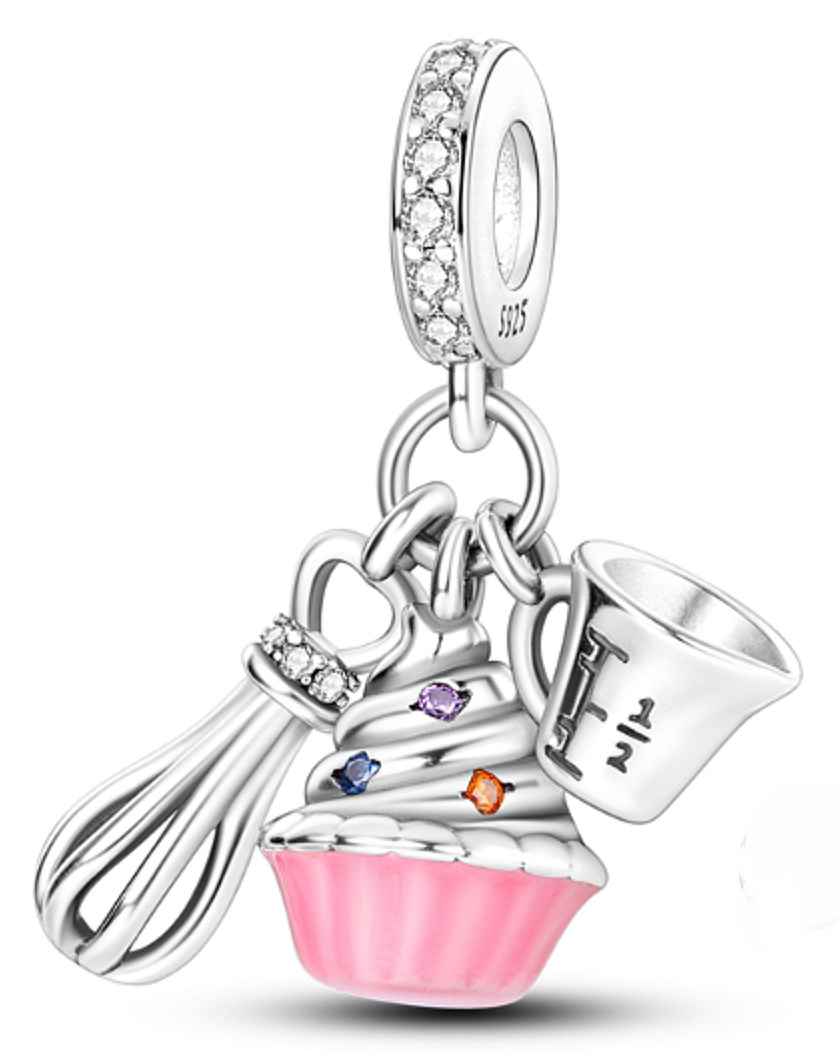 Strieborný prívesok 925 s metličkou, odmerkou a lahodným koláčikom s posýpkou.Zdobené hladkým ružovým smaltom a farebnými trblietavými zirkónmi. prsteň prívesku je po celom obvode zdobený bielym zirkónom. Každým príveskom vyrozprávajte svoj príbeh a vytvorte náramok, ktorý odráža to, kto ste a čo je pre vás dôležité.Váš štýl.Váš náramok.Váš príbeh.