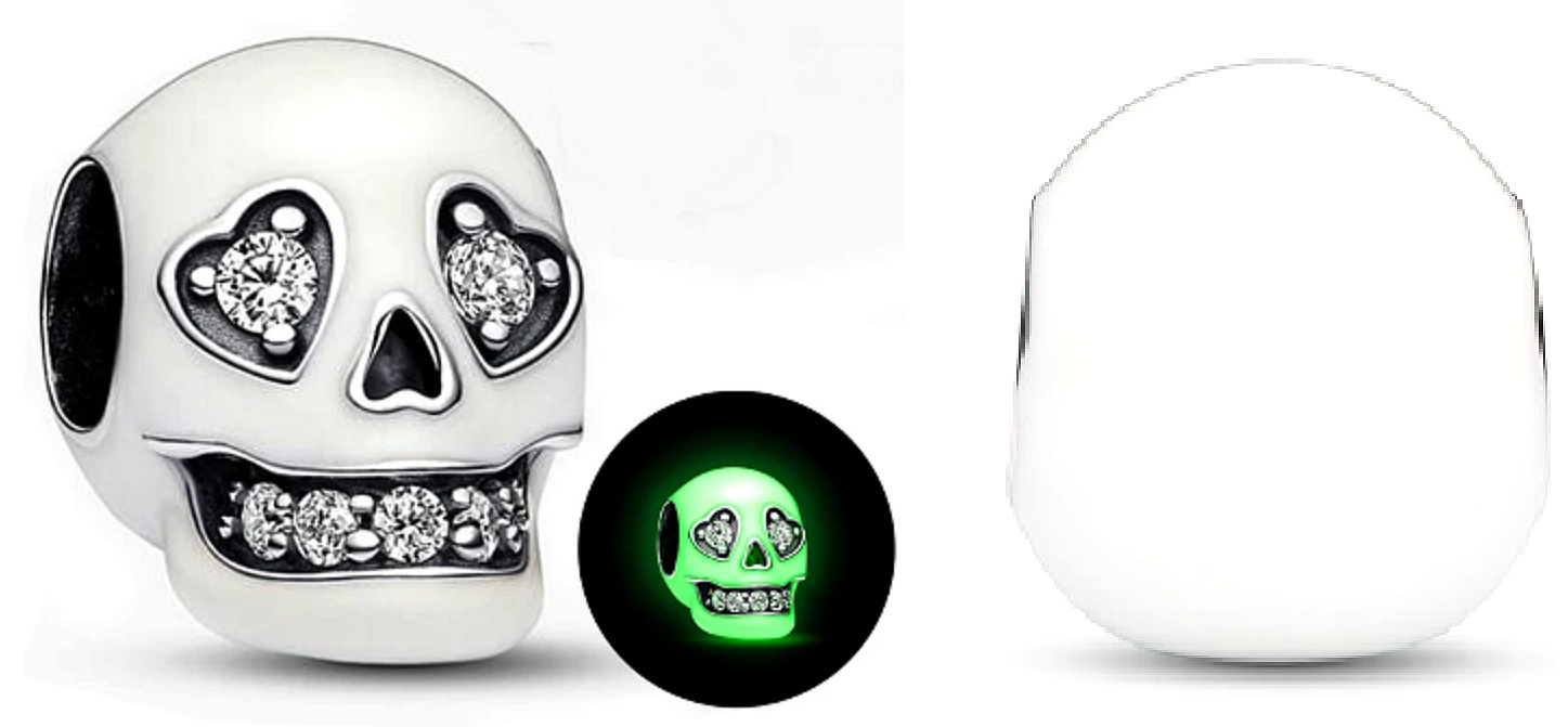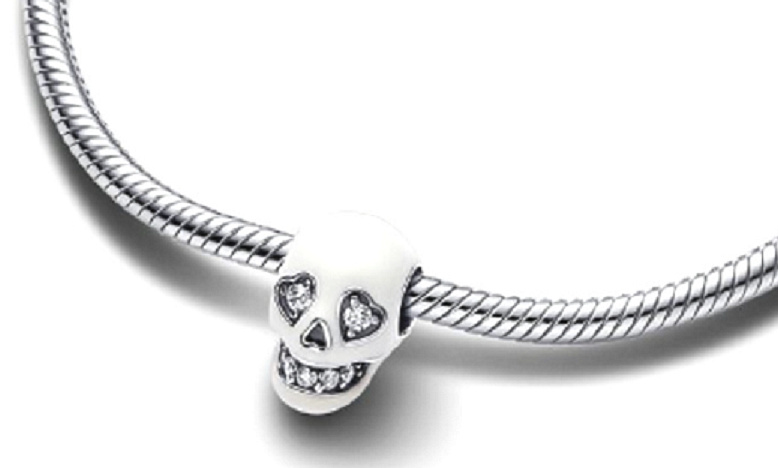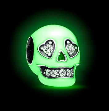 Dodajte svojmu vzhľadu šmrnc príveskom so svietiacou lebkou. Strieborný prívesok má lebku pokrytú smaltom svietiacim v tme s ústami a očami v tvare srdca, ktoré sa trblietajú čírymi zirkónmi. Vyrezávané detaily zdobia boky úst, nos a spodok lebky. Vzdajte hold tajomstvu posmrtného života a dodajte svojmu štýlu neúctivý - nehovoriac o žiarivom - nádych s týmto príveskom lebky.