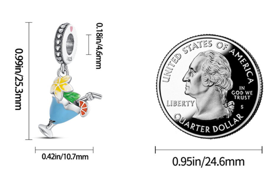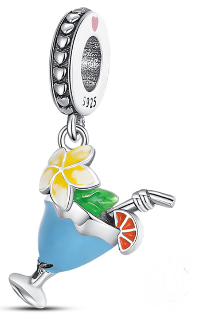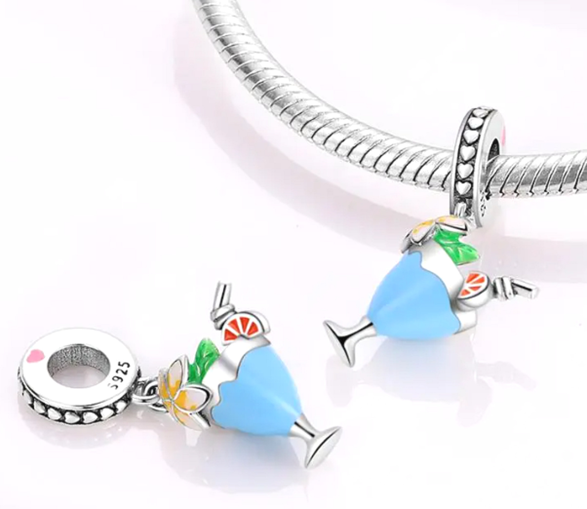 Strieborný prívesok 925 s letným koktailom , zdobený hladkým farebným smaltom a trblietavým modrým zirkónom na krúžku prívesku.Každým príveskom vyrozprávajte svoj príbeh a vytvorte si náramok, ktorý odráža to, kto ste. váš štýl. Váš náramok.Váš príbeh.