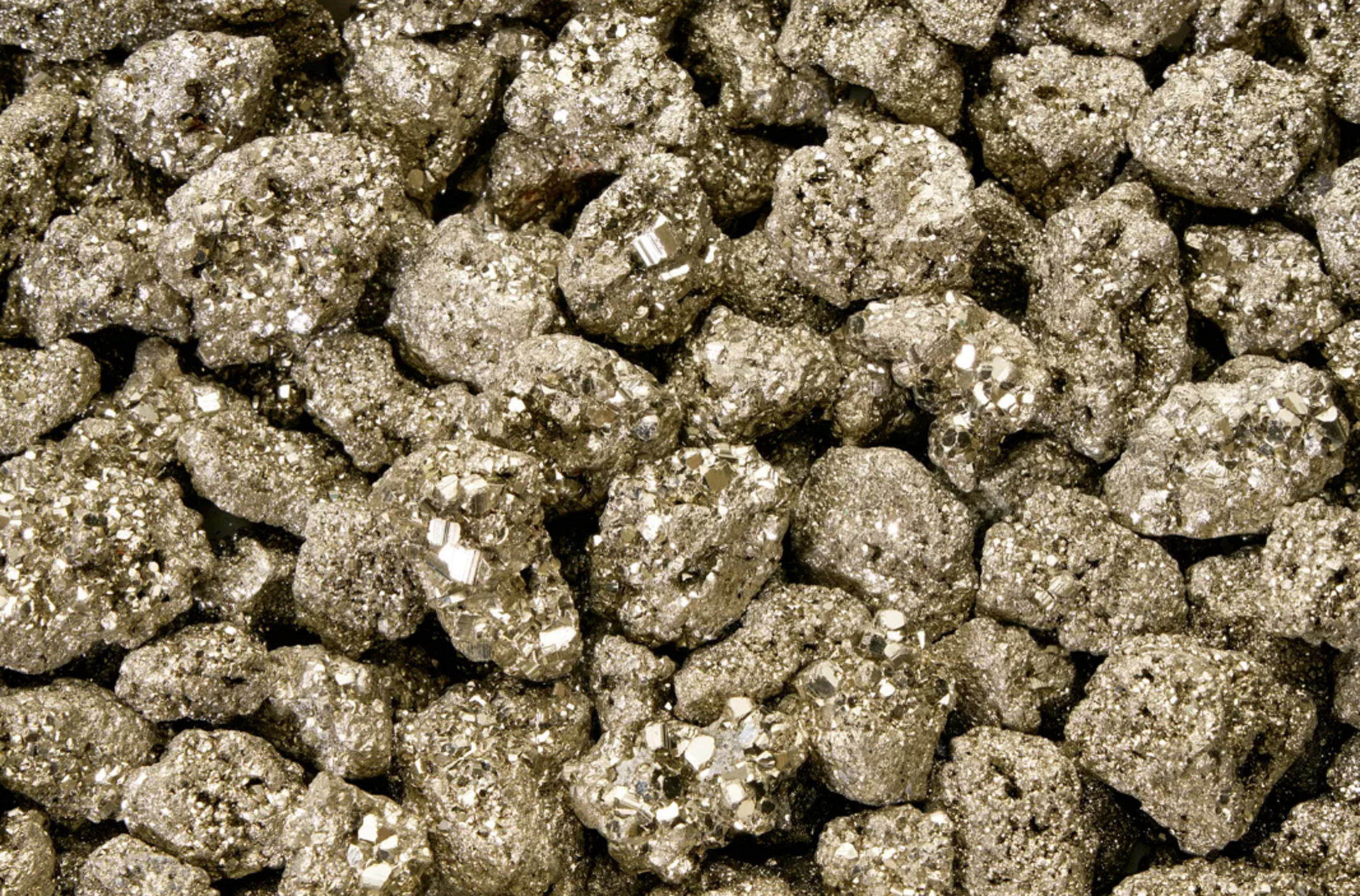Veľmi estetický minerál s pravidelnými kubickými kryštálmi, ktoré môžu dorásť až do veľkosti niekoľkých decimetrov. Pyrit je medzi zberateľmi obľúbený pre svoj medený žltý odtieň a vysoký kovový lesk. Niekedy sa nazýva "bláznovo zlato", pretože v minulosti bol často zamieňaný za tento drahý kov. Lokality jeho výskytu sa nachádzajú po celom svete, ale najkrajšie sa nachádzajú v Peru - tam je aj pôvod našich kameňov. Z hľadiska chemického zloženia ide o disulfid Železa.