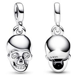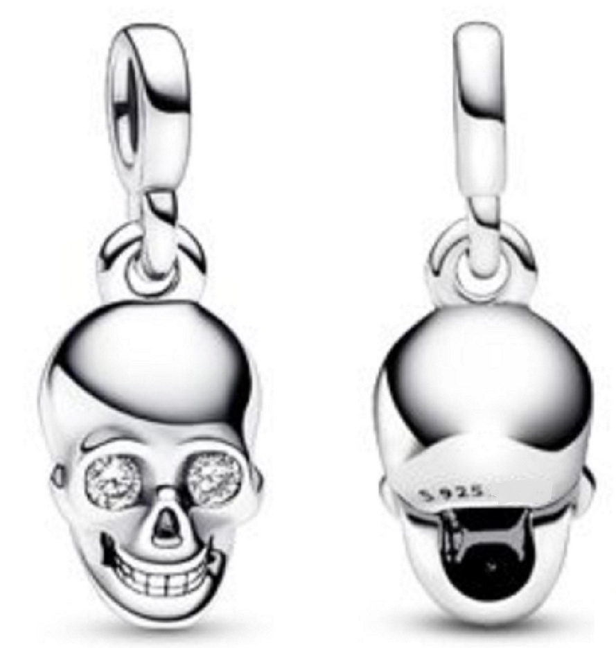 Tento miniprívesok vyrobený z čistého striebra má dve žiarivo brúsené oči z kubických zirkónov a realistické črty nosa a zubov, ktoré dokazujú, že smrť je v detailoch. do kolekcie vnáša ľahký nádych, jej význam nie je temný ani priamy, inšpirovali ju emotikony, ktoré posielate, keď umierate od smiechu. Pripomeňte si, že život netreba brať príliš vážne, a prispôsobte svoj štýl otvárateľným stylingovým konektorom na retiazkach, náhrdelníkoch, prsteňoch a náušniciach s obručou.