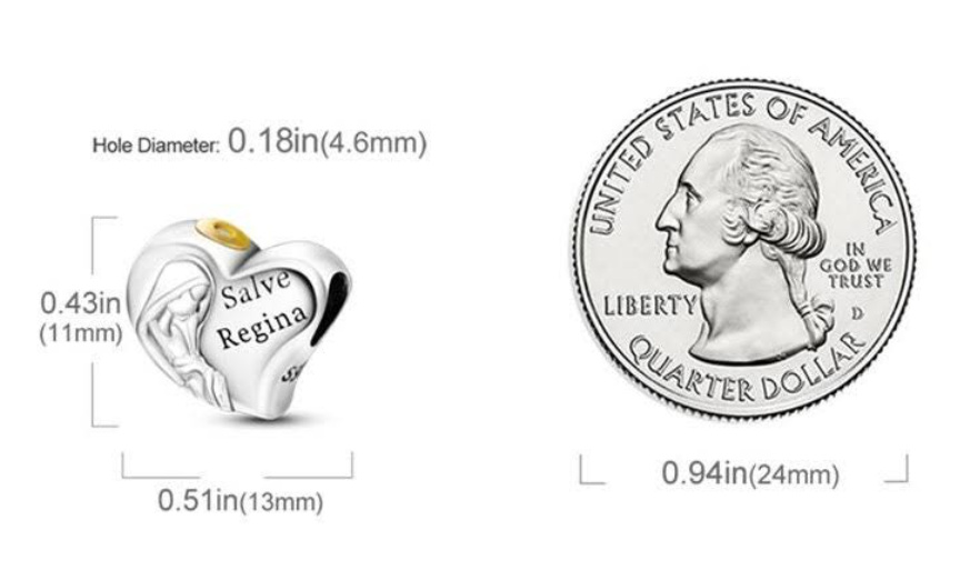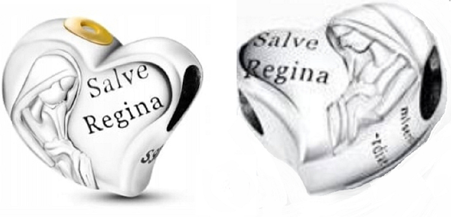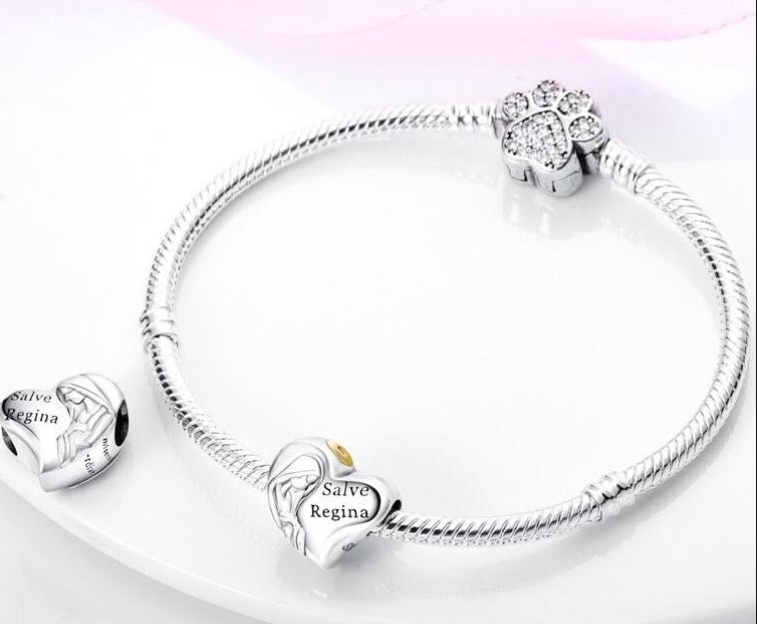 strieborný prívesok 925 v tvare srdca s Pannou Máriou s pozlátenou aureolou a vyrytými slovami "Salve Regina ", známymi aj ako "Zdravas, svätá kráľovná " - .S každým príveskom vyrozprávajte svoj príbeh a vytvorte náramok, ktorý odráža, kto ste a čo je pre vás dôležité.Váš štýl.Váš náramok.Váš príbeh.
