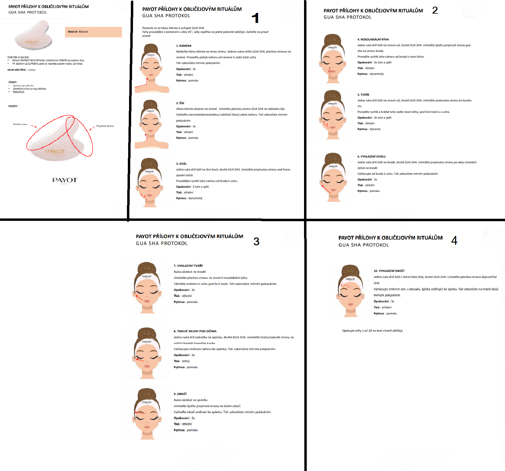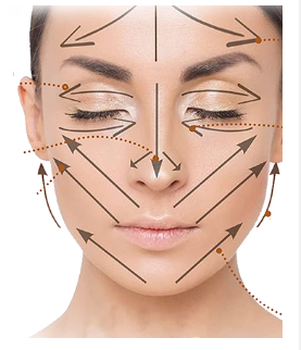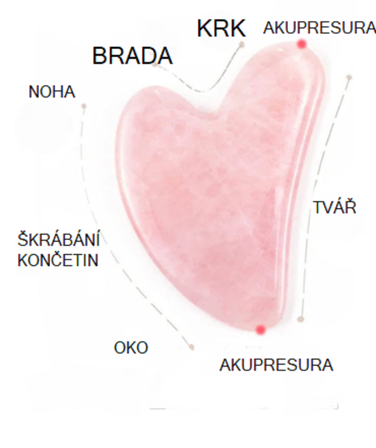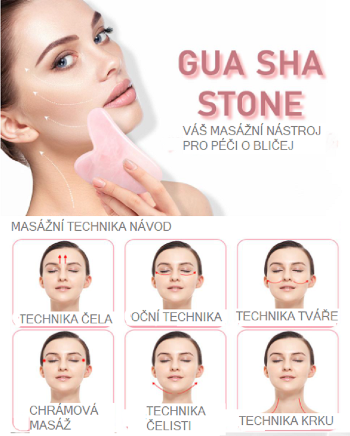 - Ťahmi smerom nahor jemne prechádzajte guašovou doskou po čele, lícach, perách a krku. Ak máte opuchnuté oči alebo vačky pod očami, zatvorte oči a jemne prevráťte viečka.