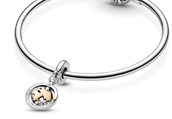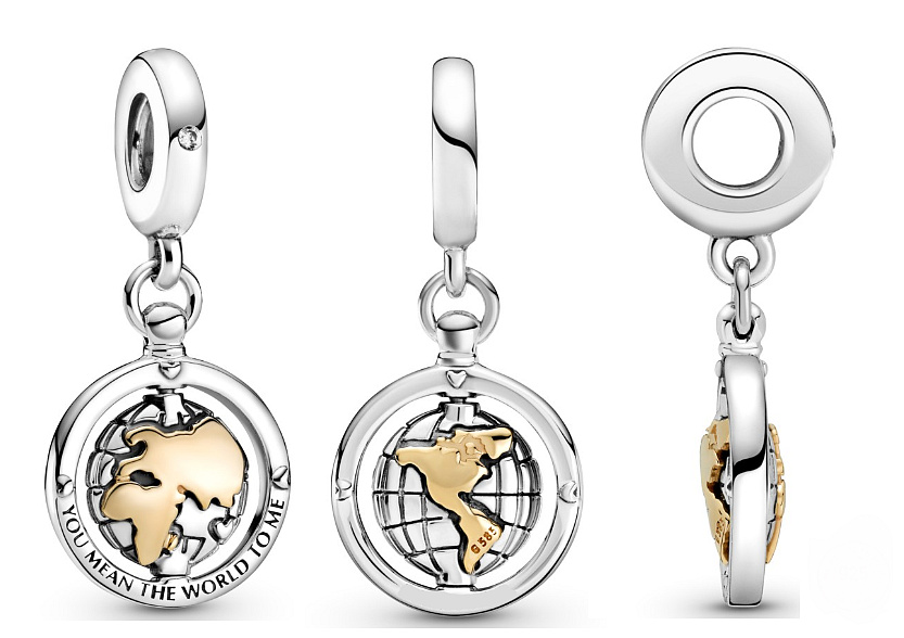 Svoju životnú lásku venuje prívesku World Turning Pendant. Tento šperk, ručne opracovaný zo striebra 925, má otočný plochý glóbus v okrúhlom rámčeku s trblietavým kameňom na očku. Glóbusy sú ručne opracované zo 14-karátového zlata a obsahujú vyryté čiary zemepisnej šírky a dĺžky . rámček má na prednej strane malé vyvýšené srdiečka a vygravírovaný text "You mean the world to me". Ukážte týmto šperkom, že vaša láska nepozná hranice.