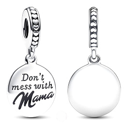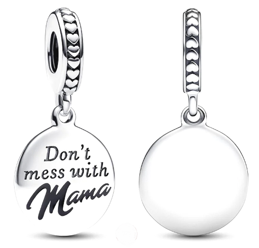 Strieborný kúsok, ktorý oslavuje materstvo s trochou humoru. Toto kúzlo obsahuje okrúhly disk s vygravírovaným nápisom "Nezahrávaj si s mamou."Jedinečný šarm spočíva v smaltovanom nápise"Mama", ktorý dodáva čierny nádych. Zástava je zdobená vyvýšenými srdiečkami a čiarami. Čím je výnimočný? Zadná strana je pripravená na váš osobný dotyk s personalizovaným gravírovaním, aby bola ešte jedinečnejšia. Darujte ho ako špeciálny darček pre svoju mamu ako hravú poctu radosti z materstva.