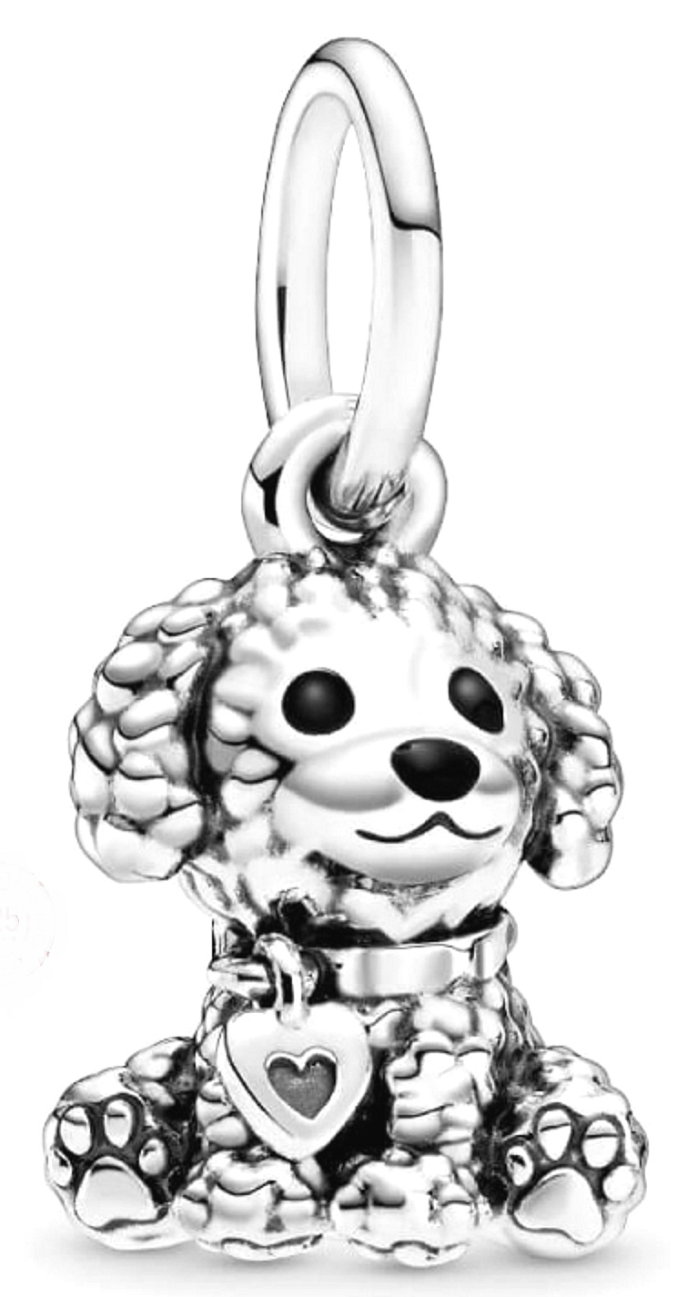Pridajte do svojho štýlového príbehu obľúbené zviera - pudla. Pudel sa považuje za jedno z najinteligentnejších plemien psov. Sú známe svojou mimoriadnou schopnosťou učiť sa a trénovať.toto rozkošné šteniatko je vyrobené zo striebra a nosí závesný obojok v tvare srdca. Jeho labky sú tiež zdobené srdiečkami. Noste prívesok na náramku alebo si ho vždy pripomeňte ako spomienku na svojho štvornohého najlepšieho priateľa.