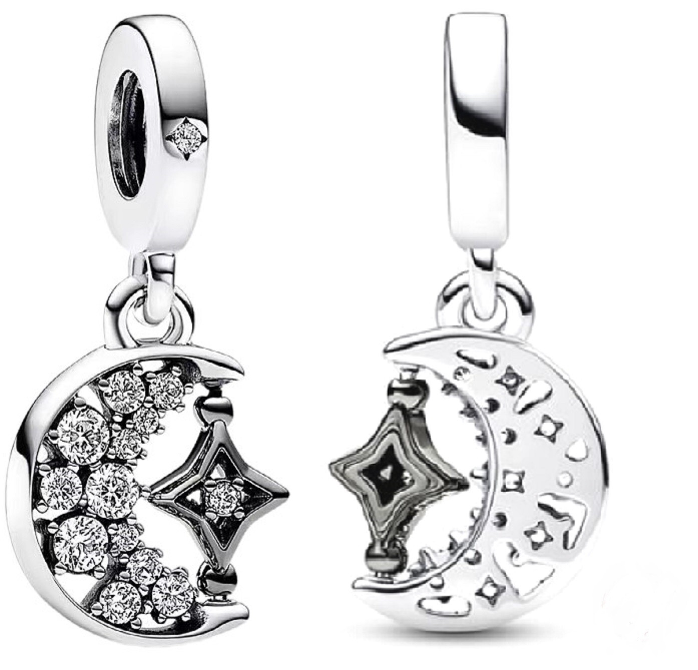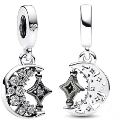 Oslávte lásku a dualitu s trblietavým príveskom s polmesiacom a rotujúcou hviezdou. prívesok obsahuje dva motívy nočnej oblohy, jasný strieborný mesiac a tmavú hviezdu pokovovanú ruténiom, ktorá je plná magických kontrastov. tmavá hviezda má vo svojom strede kameň, ažurové detaily a môže sa otáčať, zatiaľ čo polmesiac je pevný a tiež sa trbliece kameňmi rôznych veľkostí. tento strieborný prívesok inšpirovaný čínskym sviatkom svätého Valentína v sebe spája romantiku lásky a nočnej oblohy a je dokonalým darčekom pre milovanú osobu.