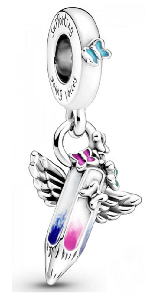 Ručne spracovaný strieborný prívesok má šesťuholníkovú pastelku s modrým, ružovým a žltým ručne naneseným smaltom pre farebný efekt. Pastelka má pridané krídla a na uzávere je vyrytý nápis "Podpora mladých hlasov" . Prívesok predstavuje dušu moderných detí a ich mnohé nádeje a sny, vrátane farebného sveta plného mnohých možností.