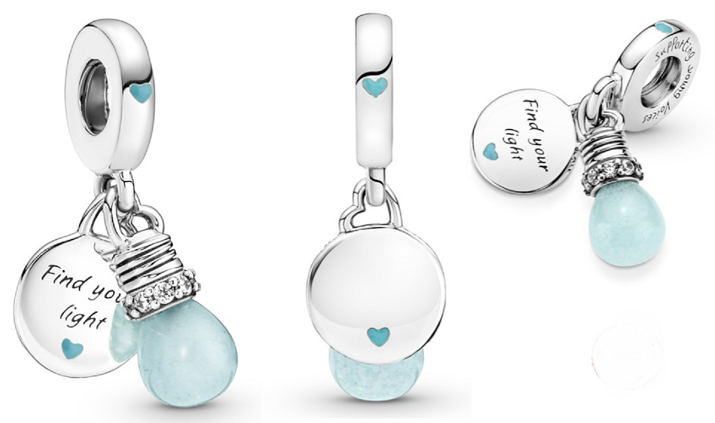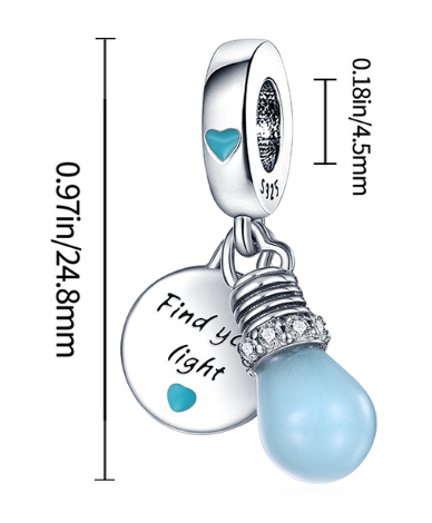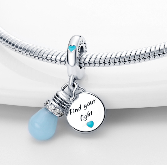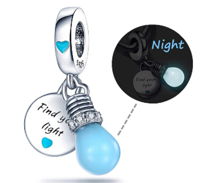 Žiarovka svietiaca v tme je inšpirovaná novou generáciou bystrých myslí. žiarovka sa v noci rozsvieti ako symbol nádeje. Rámček je zdobený radom čírych zirkónov. Na striebornom štítku je vygravírovaný citát "Nájdi svoje svetlo ". Na oboch stranách je svetlomodré smaltované srdce. Na oku je vyrytý nápis "Podpora mladých hlasov". Týmto príveskom môžete vyjadriť podporu deťom na celom svete a umožniť im splniť si svoje sny.
