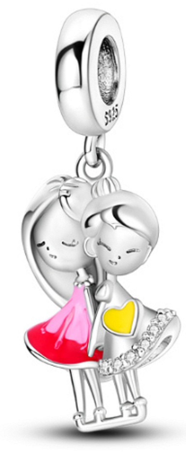 Prívesok zo striebra, zdobený dve sestry. roztomilý prívesok rozveselí váš náramok.Či už si chcete pripomenúť výnimočný okamih, alebo len pridať iskru do svojho náramku, tento strieborný prívesok vás určite zaujme. Pridajte si ho do svojej zbierky ešte dnes a užívajte si jeho nadčasovú krásu dlhé roky!
