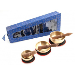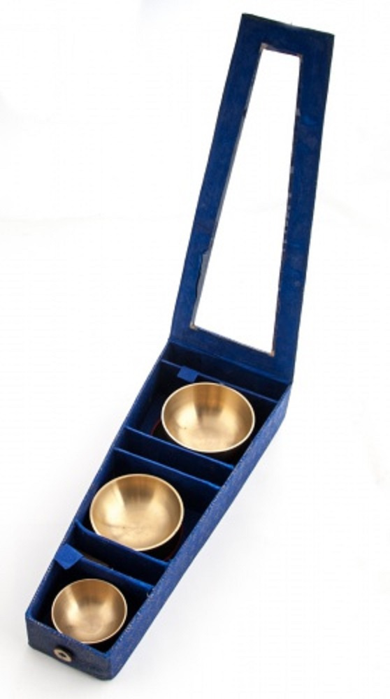 Tieto misy sú ručné vyrobené v Nepále. Balenie obsahu 3 ks tibetských mís, 3 ks podložiek pod misy, 3 ks paličiek. Všetko ku Vám zaslané v peknom modrom darčekovom balení.