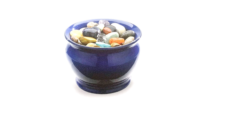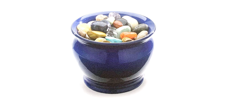 Rozmístěte kameny uvnitř fontány dle citu – mohou se navzájem doplňovat svými barvami a energií.