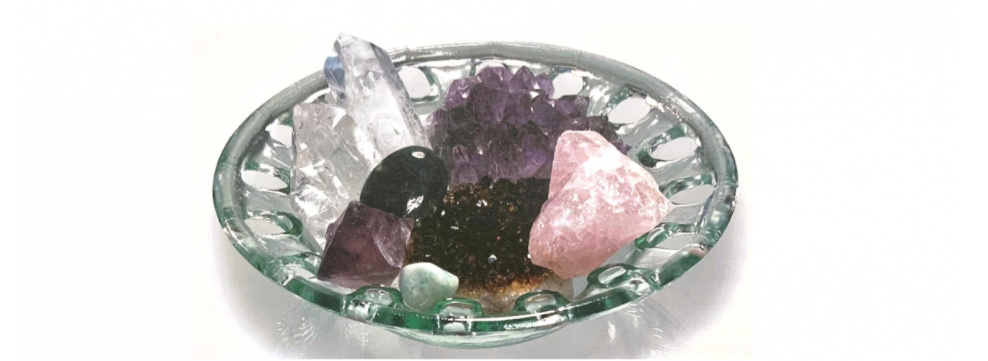 👉 Umístěte krystaly do čiré skleněné misky na: