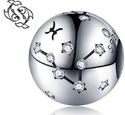 Znamenie zverokruhu Ryby, prívesok na náramok + zirkón, gulička 9 mm 1 kus
